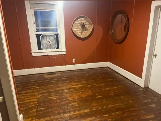 This beginner’s luck caused me to approach the bedroom with unbridled hubris. I lifted up a corner of the carpet to find thick original floor boards coated with ugly brown paint. All I had to do, I told myself, was rent a sander–an actual, industrial sander this time–and sand up the paint. I’d find a cool stain, or maybe just some polyurethane, and would have the warm, rustic bedroom of my dreams within a day and a half.