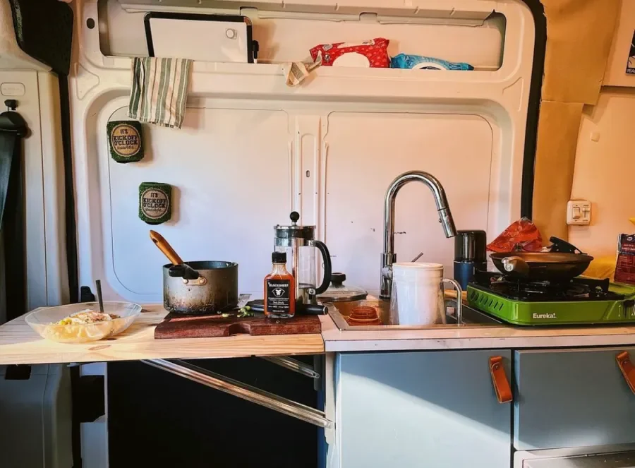 If this were a house, or even a tiny apartment, these minor misplacements would not add up to a mess. We each only had one drawer’s worth of clothing, for crying out loud. But that was part of the issue: things needed to be folded, rolled, put away precisely in the right spot. While cleaning the space required less work overall, it demanded strict methodology. The van was always three crumpled t-shirts away from looking like a frat house.